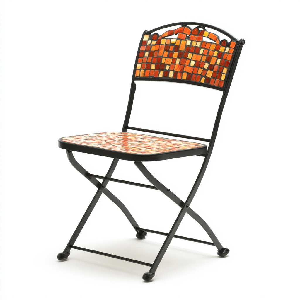 Krzesło ogrodowe - metalowo-ceramiczne - 43x47x90 cm - czarny-pomarańczowy - mozaikowy design