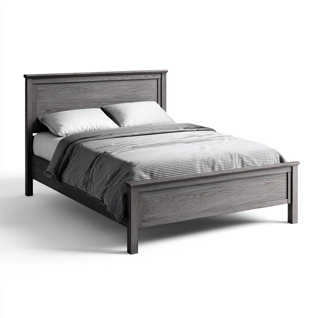 Łóżko podwójne - tkanina lniana-drewno-200x160x110 cm - jasnoszary - styl francuski klasyczny