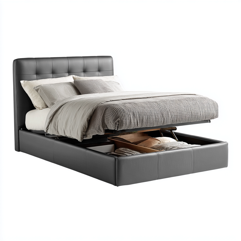 Łóżko podwójne - metal-skóra ekologiczna - 200x160x95 cm - ciemnoszary - styl nowoczesny luksusowy funkcjonalny