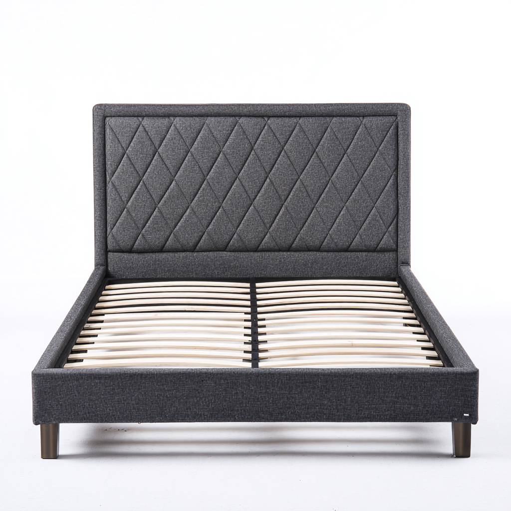Łóżko podwójne - metal-tkanina - 200x160x95 cm - ciemnoszary - styl nowoczesny minimalistyczny