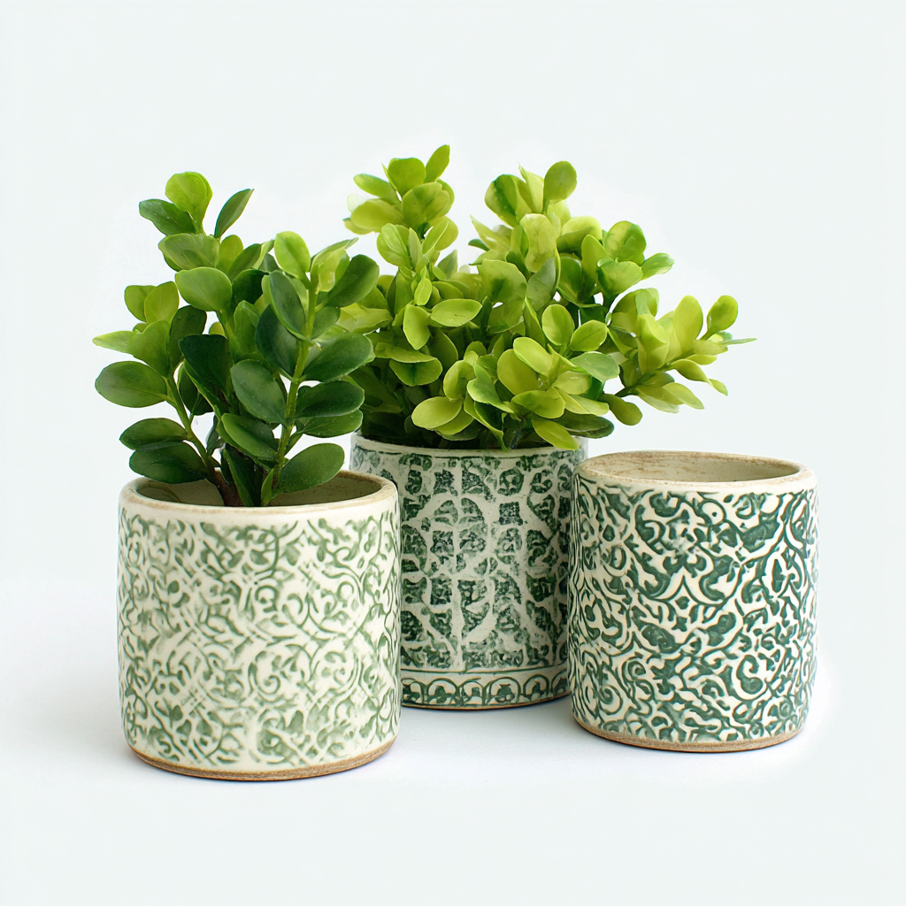 Doniczki ogrodowe - ceramiczne 15x14-13x12-11x10 cm - Zielony-Biały - Styl vintage