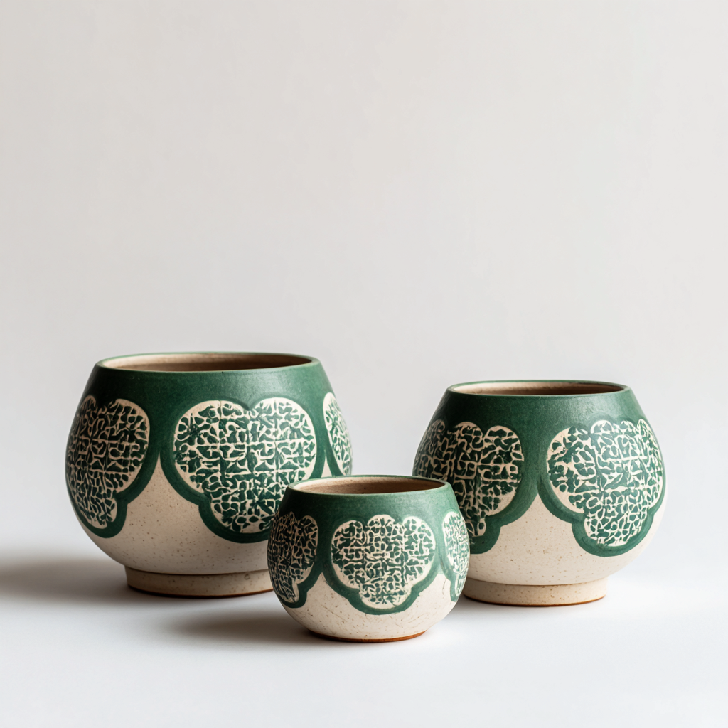 Doniczki ogrodowe - ceramiczne 23x22-19x18-15x14 cm - Zielony-Biały - Styl art deco