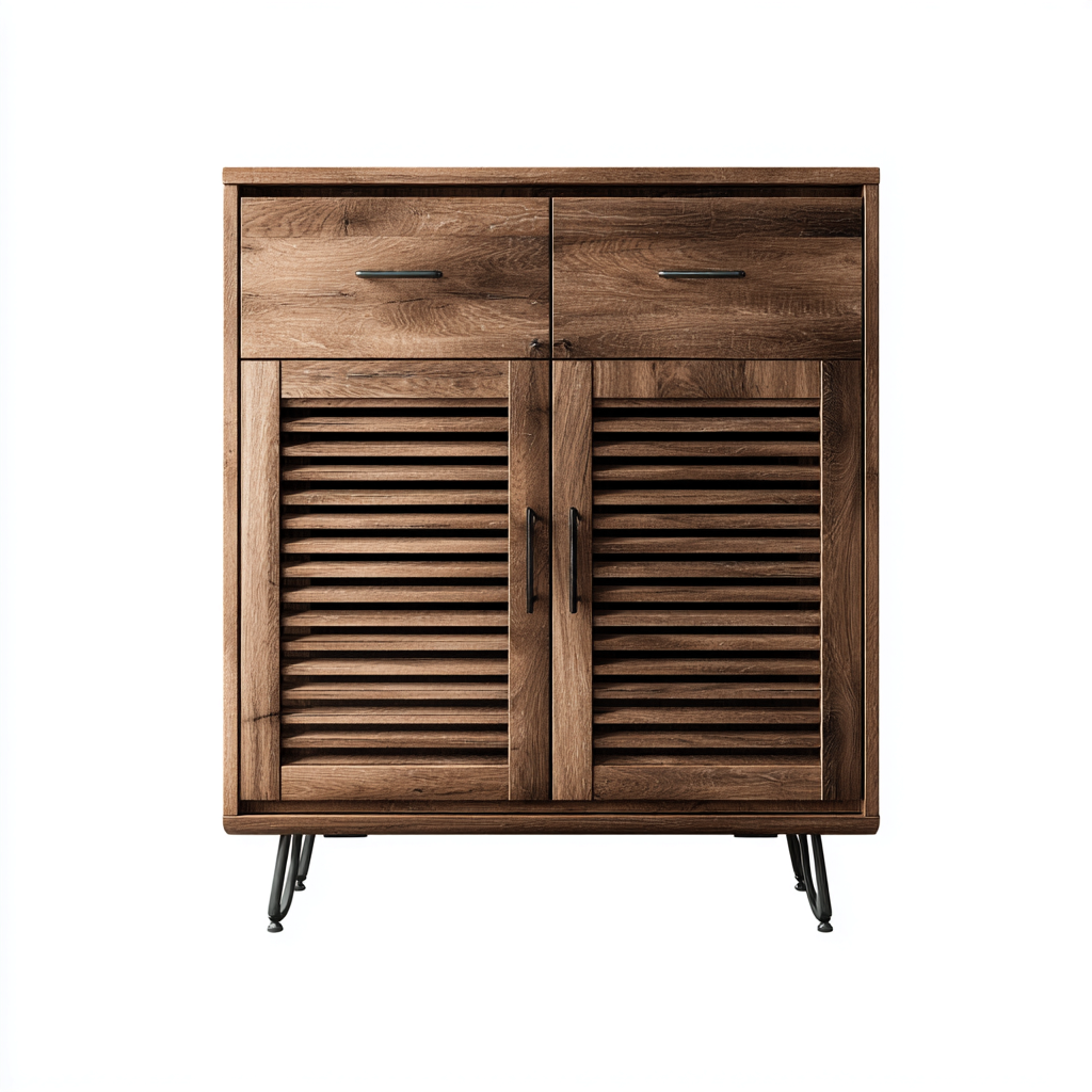 Szafki na buty-drewno lite-metal-85x35x105 cm-orzech-brązowy-industrialna