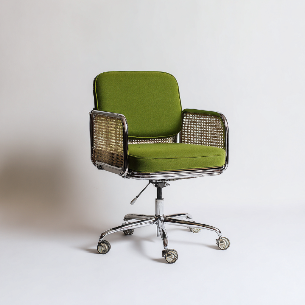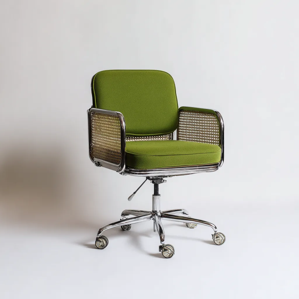 Stylowe krzesło biurowe o wyjątkowym połączeniu materiałów i kolorów, które wprowadza do przestrzeni pracy niepowtarzalny charakter. Idealne do biura, pracowni lub domowego gabinetu, łączy wygodę z oryginalnym designem w stylu retro.