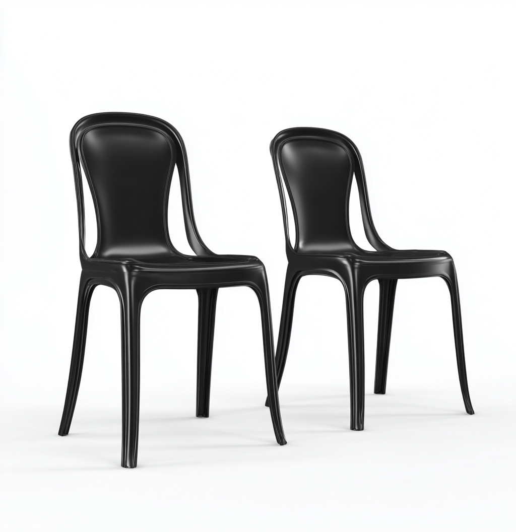 Zestaw dwóch klasycznych krzeseł ogrodowych to eleganckie połączenie tradycyjnej formy i nowoczesnego wykonania. Krzesła w czarnym połyskującym wykończeniu idealnie pasują do przestrzeni zewnętrznych i wewnętrznych - ogrodu, tarasu, jadalni czy kawiarni.