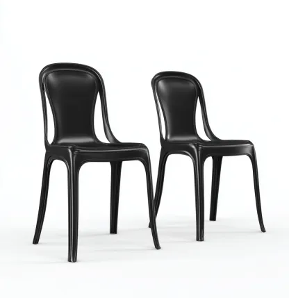 Krzesła wykonane w całości z wytrzymałego tworzywa sztucznego o wysokiej odporności na promieniowanie UV i wilgoć. Powierzchnia jest gładka i połyskująca, łatwa do utrzymania w czystości.