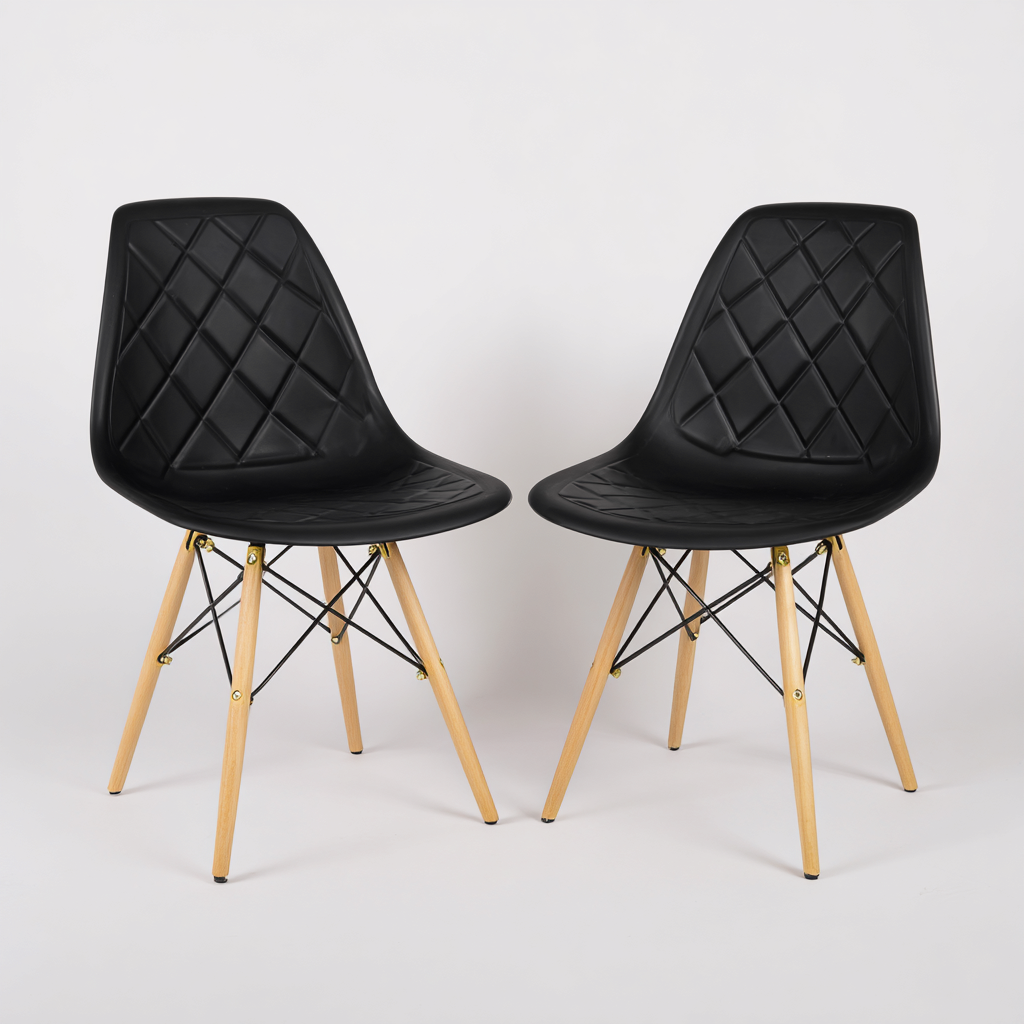 Zestaw dwóch nowoczesnych krzeseł ogrodowych łączy elegancję i funkcjonalność, tworząc idealne rozwiązanie do każdej przestrzeni — zarówno zewnętrznej, jak i wewnętrznej. Stylowe czarne siedziska w połączeniu z naturalnymi drewnianymi nogami dodają wnętrzom nowoczesnego charakteru.