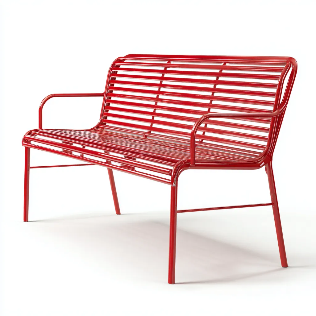 Nowoczesna ławka ogrodowa wykonana z trwałego metalu w intensywnym czerwonym kolorze to stylowy i funkcjonalny element wyposażenia każdej przestrzeni zewnętrznej. Idealna do ogrodu, tarasu lub patio, oferuje wygodne miejsce do odpoczynku na świeżym powietrzu.