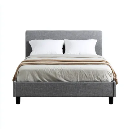 Nowoczesne łóżko podwójne o prostym, eleganckim wyglądzie to idealne rozwiązanie dla osób ceniących komfort i minimalizm. Szara tapicerka o subtelnej fakturze nadaje całości stylowy charakter, a miękkie wezgłowie zapewnia wygodne oparcie podczas odpoczynku.