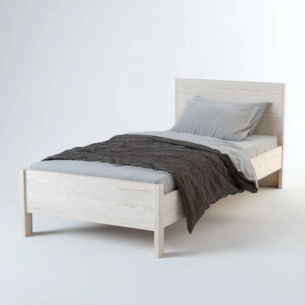 Nowoczesne łóżko pojedyncze wykonane z drewna w naturalnym, jasnym kolorze to idealne połączenie prostoty i funkcjonalności. Minimalistyczna konstrukcja oraz subtelne usłojenie drewna tworzą przyjemny i ciepły akcent w każdej sypialni.