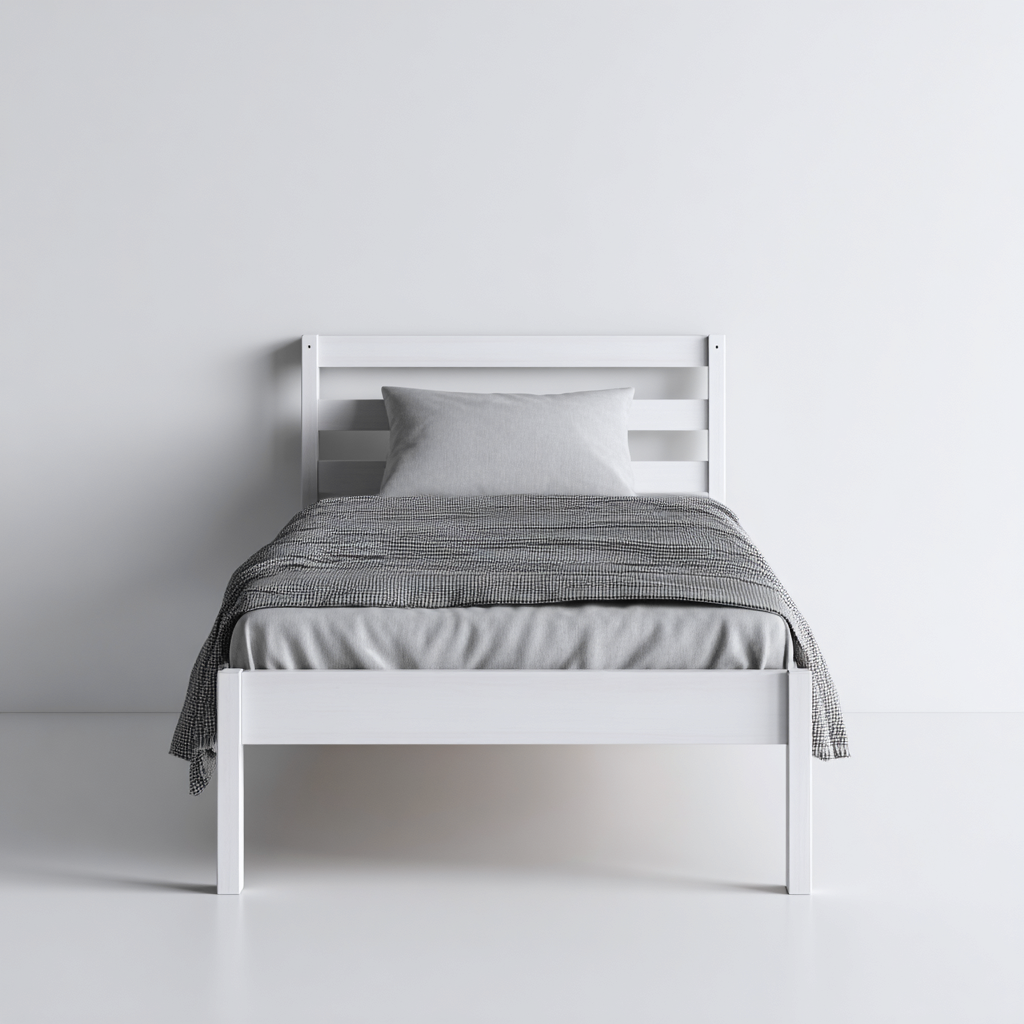 Nowoczesne łóżko pojedyncze wykonane z litego drewna sosnowego w kolorze białym to doskonały wybór dla osób ceniących prostotę, estetykę i trwałość. Minimalistyczna forma oraz poziome listwy zagłówka wprowadzają do wnętrza lekkość i harmonię.
