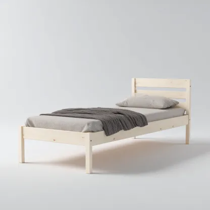 Nowoczesne łóżko pojedyncze wykonane z litego drewna sosnowego w naturalnym kolorze to doskonały wybór dla osób ceniących minimalizm, trwałość i ponadczasowy design. Prosty zagłówek z poziomymi listwami nadaje całości lekkości i harmonii.