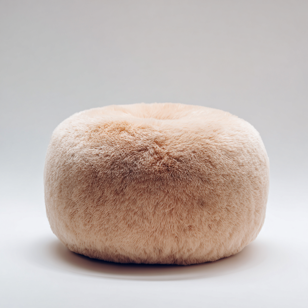 Stylowy puf w beżowym kolorze wykonany z miękkiego sztucznego futra to elegancki i przytulny dodatek do każdego wnętrza.Jego puszysta faktura i zaokrąglony kształt tworzą harmonijną całość, idealną do salonu、sypialni lub garderoby.