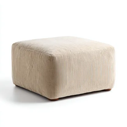 Elegancki podnóżek w kolorze beżowym, wykonany z przyjemnej w dotyku tkaniny sztruksowej, to doskonały element wyposażenia nowoczesnych wnętrz.Jego prosta forma i miękka powierzchnia wprowadzają do pomieszczenia harmonię i komfort, idealnie sprawdzając się w salonie, sypialni czy gabinecie.