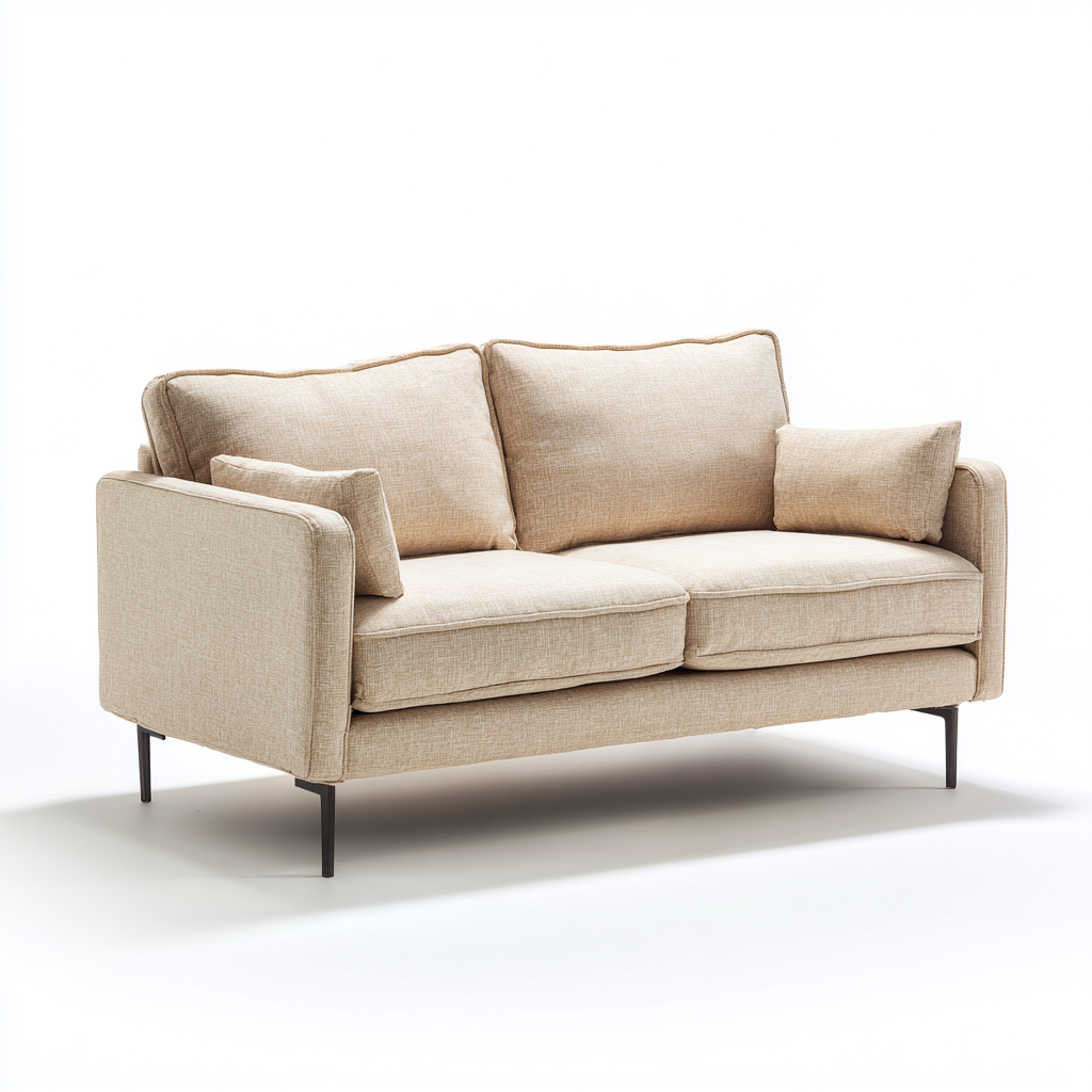 Nowoczesna dwuosobowa sofa o lekkiej formie i prostych liniach to idealne rozwiązanie dla miłośników funkcjonalnego i eleganckiego wzornictwa. Beżowy kolor tkaniny wprowadza do wnętrza ciepło i harmonię, a kompaktowy rozmiar sprawia, że mebel doskonale sprawdza się zarówno w salonie, jak i w mniejszych przestrzeniach.