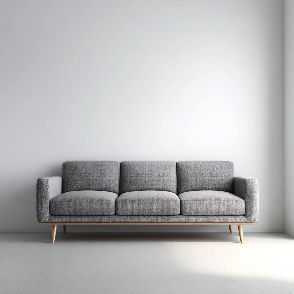 Sofy Proste wykonano z wysokiej jakości tkaniny o gęstym splocie, odpornej na codzienne użytkowanie. Rama z litego drewna gwarantuje stabilność i długą żywotność. Szary odcień tapicerki nadaje sofie subtelny, nowoczesny charakter, a smukłe drewniane nogi dodają jej lekkości wizualnej.