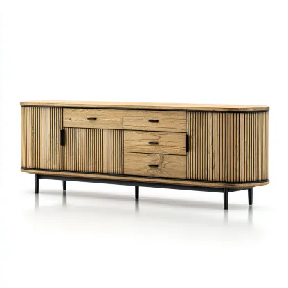 Stylowa szafka RTV o eleganckim, nowoczesnym wyglądzie łączy naturalne piękno drewna dębowego z industrialnym charakterem metalowych detali. Harmonijne połączenie materiałów sprawia, że mebel doskonale komponuje się zarówno z nowoczesnymi, jak i loftowymi wnętrzami.