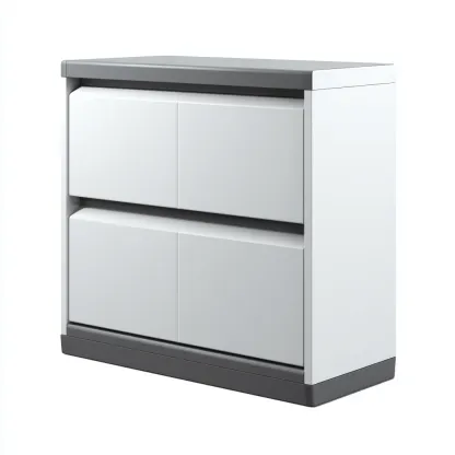 Nowoczesna szafka na buty z tworzywa sztucznego w kolorze białym z szarymi akcentami to praktyczny i stylowy element wyposażenia każdego przedpokoju. Minimalistyczny design oraz funkcjonalna konstrukcja z dwiema pojemnymi szufladami zapewniają wygodne przechowywanie obuwia, utrzymując przestrzeń w czystości i porządku.