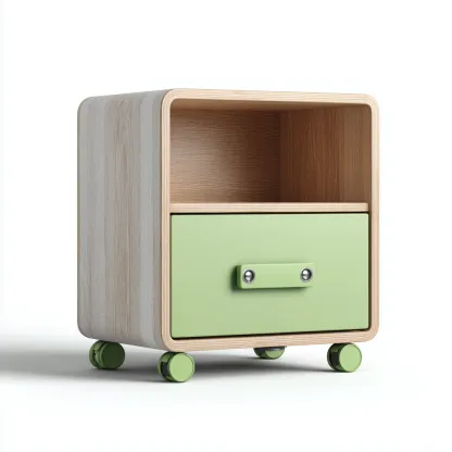 Nowoczesna forma i miękkie zaokrąglenia krawędzi gwarantują bezpieczeństwo użytkowania. Szuflada zapewnia przestrzeń na drobne akcesoria, a otwarta półka idealnie sprawdzi się na książki lub dokumenty. Mobilna konstrukcja zwiększa wygodę w codziennym użytkowaniu.