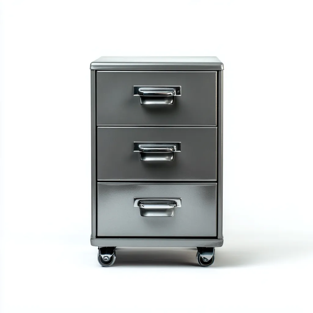 Stylowa metalowa szafa biurowa w kolorze szarym to idealne rozwiązanie do biur, gabinetów oraz domowych przestrzeni roboczych. Dzięki trzem praktycznym szufladom umożliwia wygodne przechowywanie dokumentów, akcesoriów i drobnych przedmiotów biurowych, jednocześnie zachowując nowoczesny wygląd wnętrza.